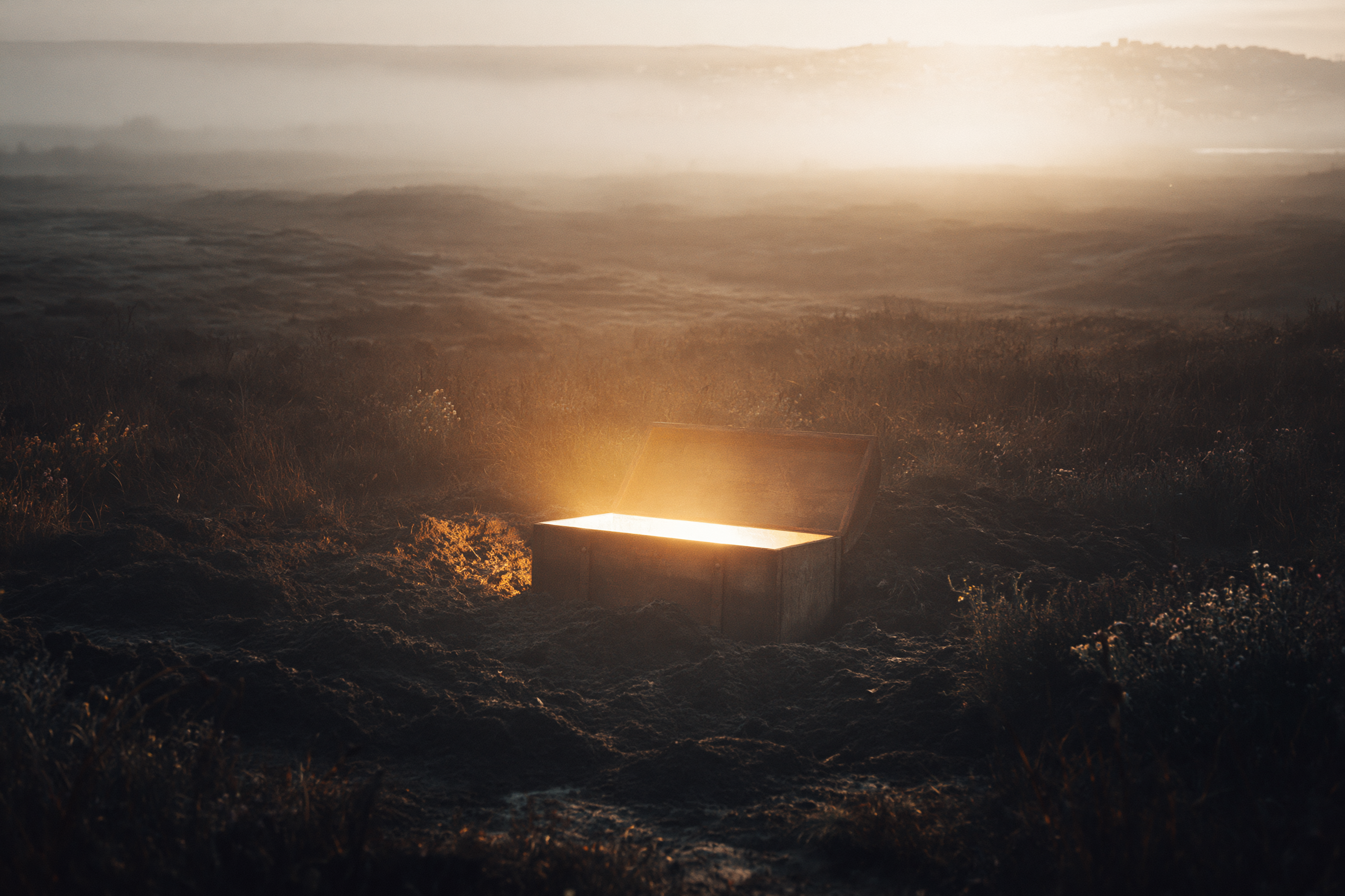 Zo gaat het in deze gelijkenis. Iemand is op het land bezig, of misschien liep hij er gewoon doorheen onderweg naar de stad. Met zijn gedachten was hij vast helemaal ergens anders. Hij zocht geen schat, hij had genoeg. Misschien was hij vol van zijn huis, zijn werk, zijn familie of de dingen die in de wereld gebeuren. Gewoon van allemaal goeie dingen. En opeens ziet hij die schat!